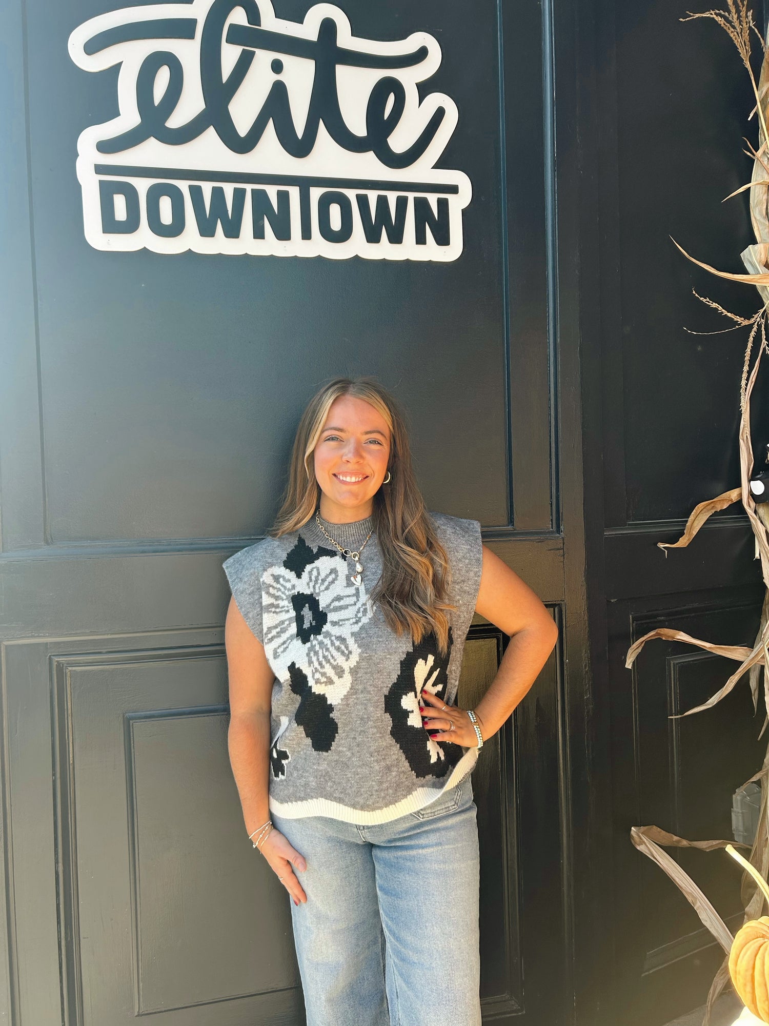 Grey and Black Print Sweater Vest