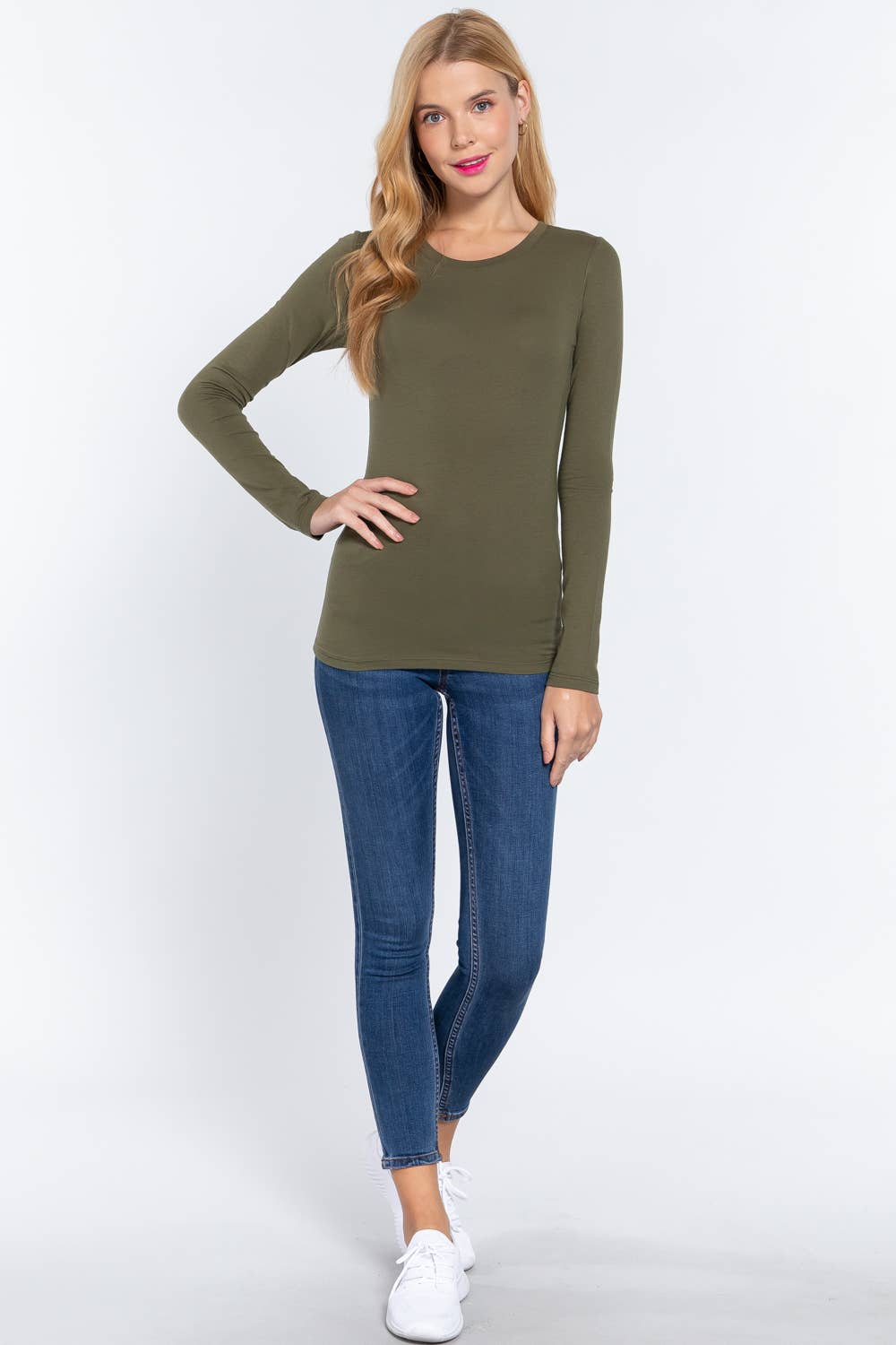 Long Sleeve Crew Neck Cotton Spandex Jersey Top