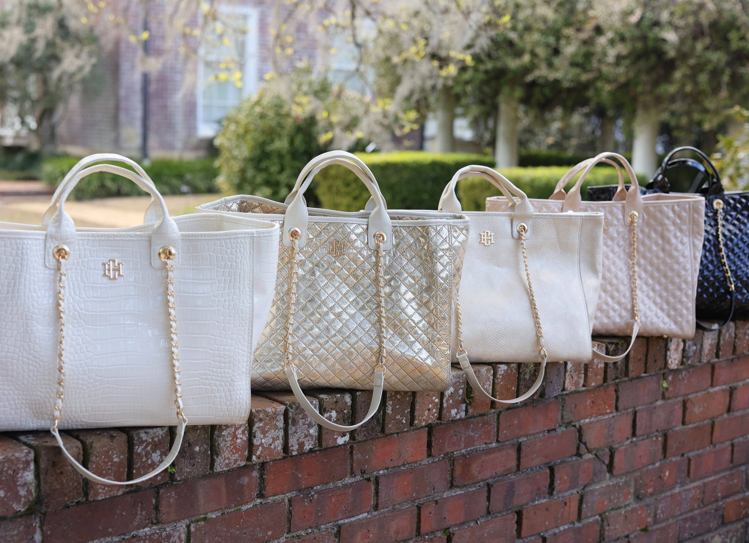 This oversized tote is the best go-to handbag! It has two short top handles as well as two elongated braided handles to carry on your shoulder. The Caroline Hill logo is centered at the top of this bag on one side. It has a magnetic closure leading to the roomy interior of the bag. It has one zippered pocket and two open pockets inside. There are also feet on the bottom of the bag for added protection. It's the perfect size for travel, carrying a laptop, or for everyday fashion.