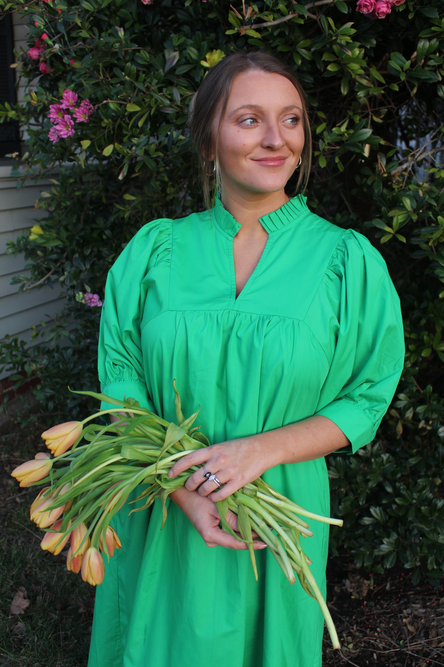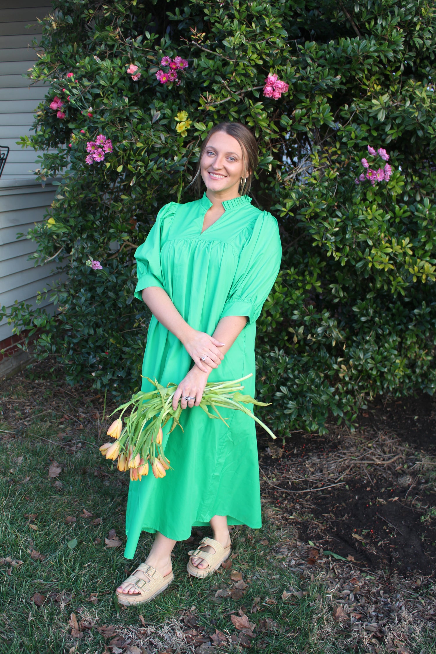 Solid Puff Sleeve Midi Dress