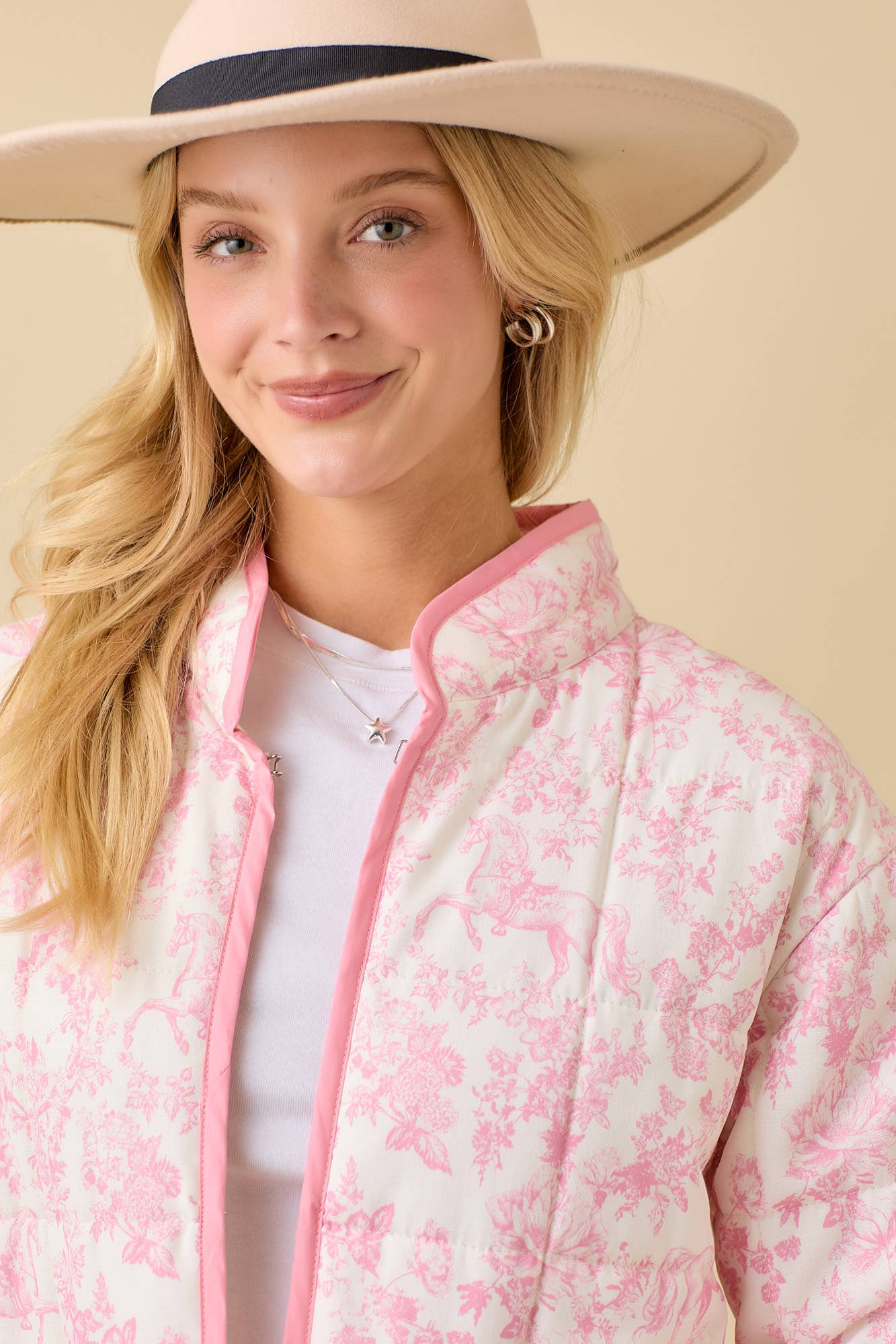 Vintage Print Quilted Padded Jacket With Binding Detail